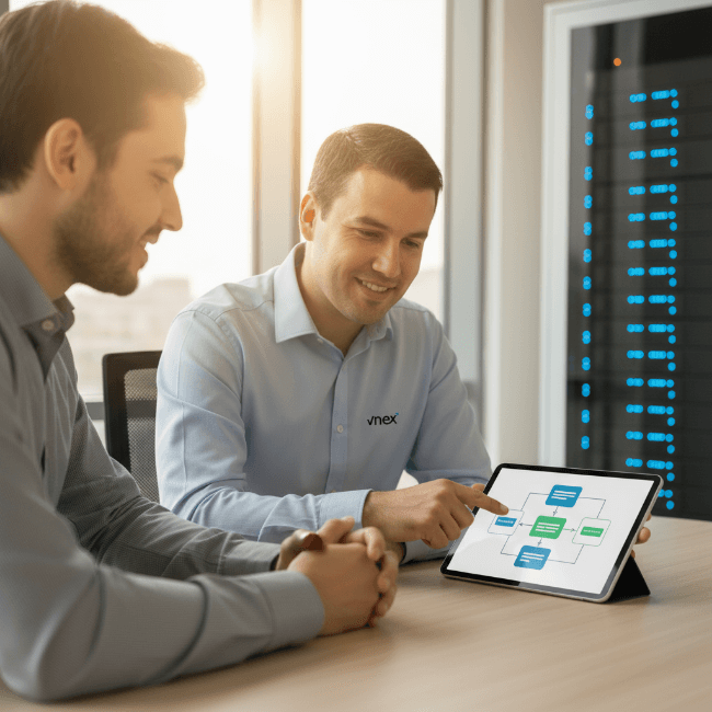 La continuidad operativa exige más que tecnología avanzada: requiere un partner técnico que comprenda los desafíos de mantener sistemas críticos activos. vNex acompaña equipos de TI con expertise especializado, monitoreo preventivo y disponibilidad constante.
